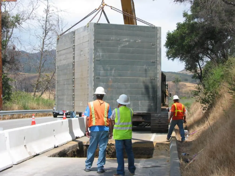 This project consisted of the design engineering and building of 12.7 miles of 4-4 PVC Schedule 40 Conduits in a concrete encased duct bank, and at times, bore drilled to miss existing utilities and culverts. This duct bank serves as the communications backbone for the NAVY and runs between camps along the roadside and within the roadway itself. About 50% of this project was installed in the road, where asphalt was removed and replaced, while maintaining vehicle flow. Stronghold Engineering utilized its large scale Vermeer track mounted belt trenching unit to install much of the inroad duct bank at a rate of 1,200’ per day of excavation, conduit installation, concrete encasement, and backfill. This operation requested 20 men per day in a closely managed environment to ensure the distances were opened and closed efficiently.