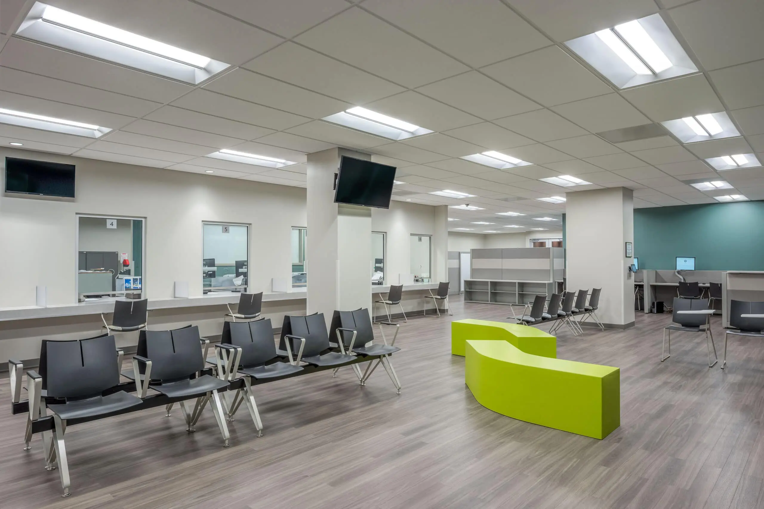 The Design Build Team collaborated to develop a phasing plan that would cause the least disruption to existing agencies, while keeping the building operational throughout construction. The Architect team designed swing spaces for temporary relocation of courts staff within the existing facility during the remodel. Design services included schematic design, design development, construction documents, detailed phasing plan, cost estimating, site investigation, site measurements and verification, code compliance, and contract administration, contract close-out.