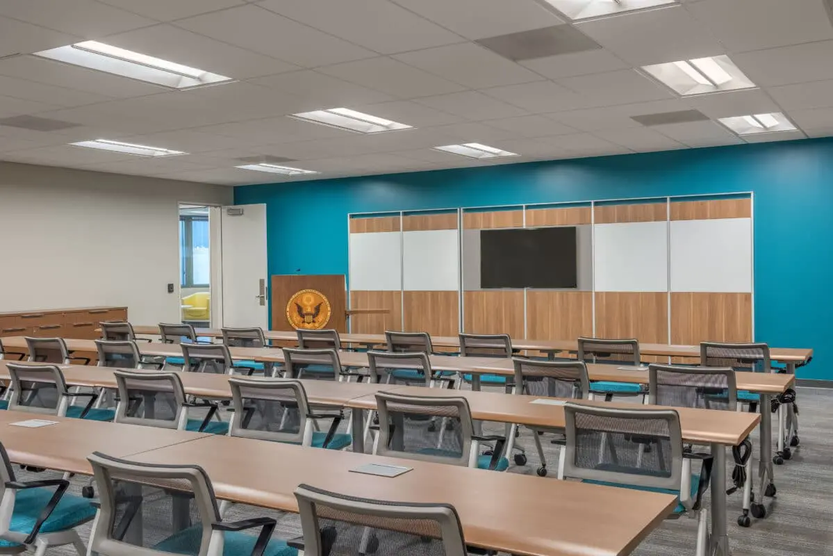 The scope included demolishing existing court rooms to create open air office spaces, upgrading finishes to court rooms, building a new circuit library, building two new intake areas for the public and building the new Pretrial office space. The project also involved building out swing spaces for use during construction as well as the activity of managing the move of employees in and out of swing spaces. All work was done during the night hours and turned back to a fully operational facility for the daytime hours. Stronghold worked to minimize the impact to every day operations of the building and ensure the GSA’s expectations were exceeded.