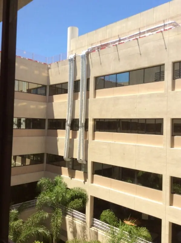 The temporary systems included packaged HVAC units with controls and filtration located outside on grade and on the facility’s roof with temporary ductwork routed to the various building departments. The Infection Control requirements and procedures of the NMCSD were maintained by the temporary systems to meet critical health care requirements. As an electrical contractor over 30-years ago, Stronghold self-performed the electrical scope of work.