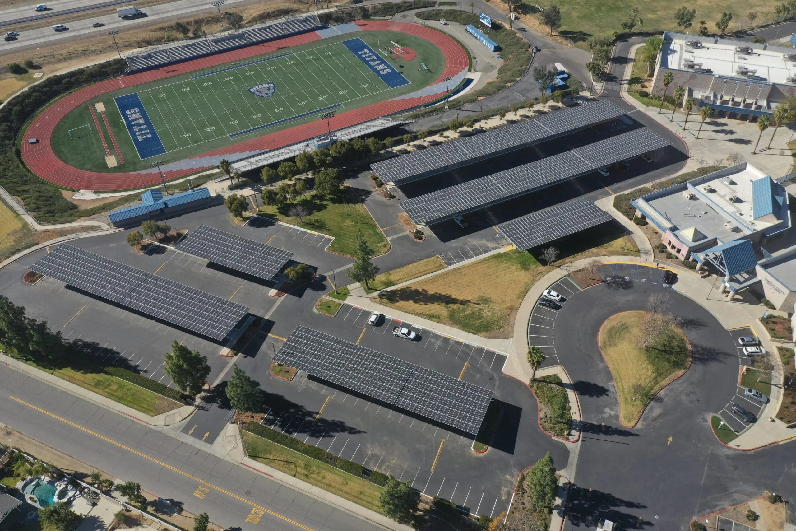 Stronghold Engineering was given an opportunity to provide power in 14 Lake Elsinore Unified School District locations consisting of 10 schools and 4 administration buildings. At these locations, Stronghold successfully installed 67 solar carports over parking areas covering 225,932 square feet for a total of 4MW of photovoltaic power. Additional battery storage systems were also installed at two of the seven sites.