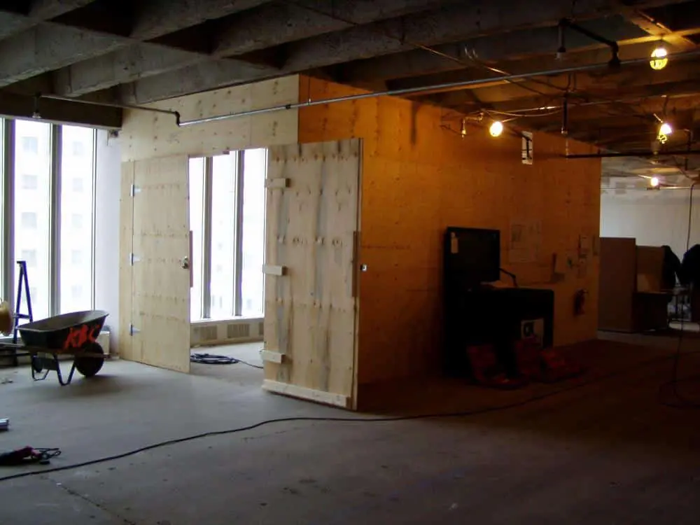 The scope of work included: acoustical ceilings, building insulation, casework, rough carpentry, drywall, gypsum board and metal studs; fiber optic cable and conduit; data, communications and CCTV; HVAC, electrical rough and finish, junction boxes and terminal cabinets; demolition; fire alarm and sprinkler systems installation and additions to meet attenuation requirements; doors, frames & hardware; miscellaneous metals; duct silencers to meet OBO requirements; painting and flooring; electrical conduit, boxes and fittings for alarm panels; and Panduit raceway to allow electrical connection of modular furniture.