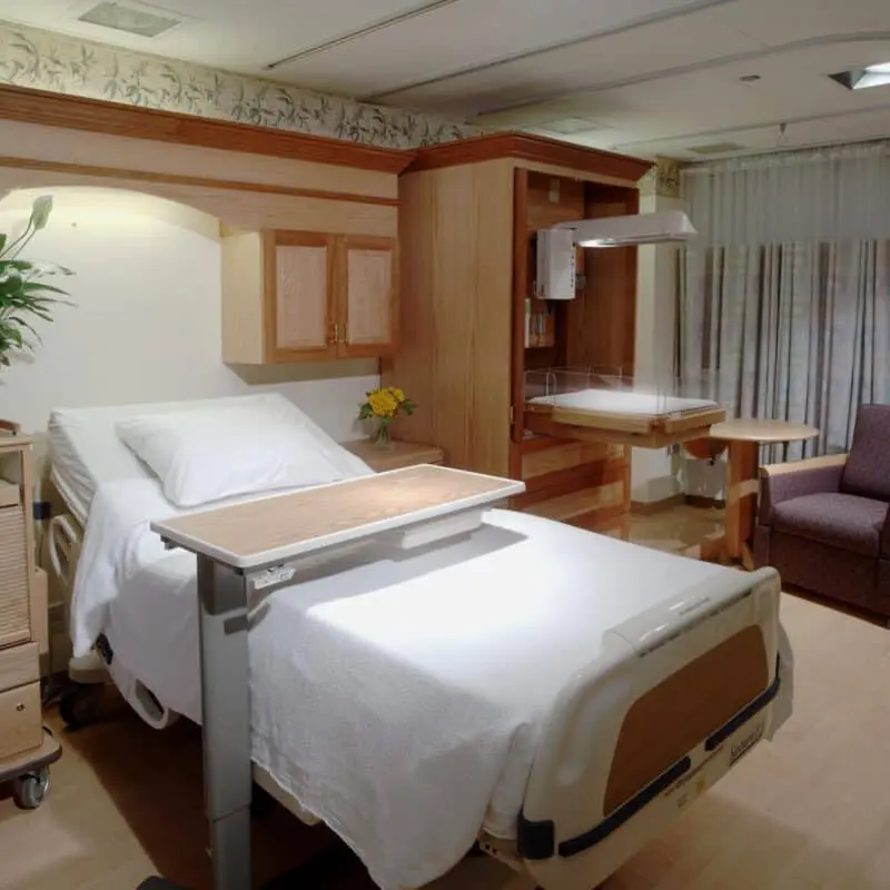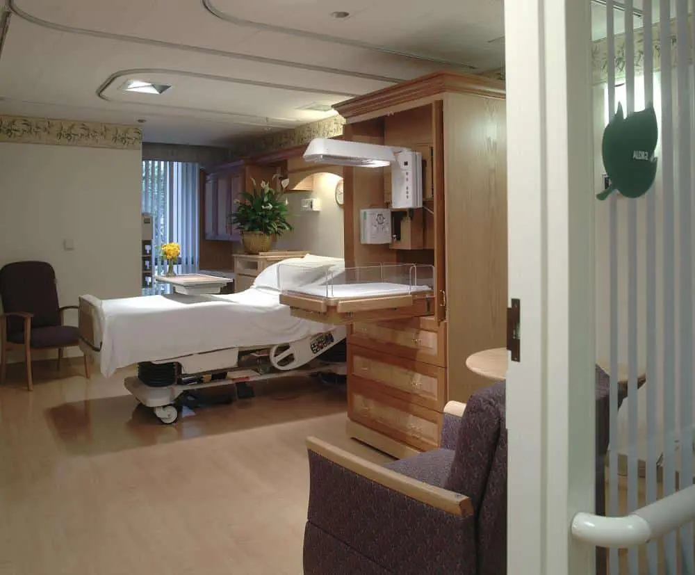 Remodeling revolved around the themed design concept developed during the design process. A high-end interior design firm was engaged to recommend corresponding design elements and special architectural features such as the birthing wall design in the LDR rooms. In addition, the project involved medical gas systems in the patient isolation rooms, which were modified to allow enclosure in decorative casework.