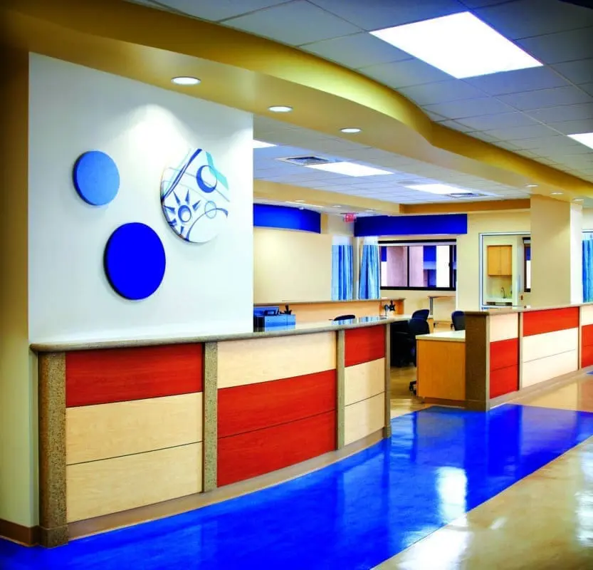 Evidence based design efforts were employed, which included providing a patient and family centered environment, improving the quality of healthcare delivered, superior organization and staffing areas, providing support care for the individual with extensive day lighting and color, and finally creating a positive work environment with efficient Nurse/Staff areas while providing standardized operations and systems for future modifications, as needed.