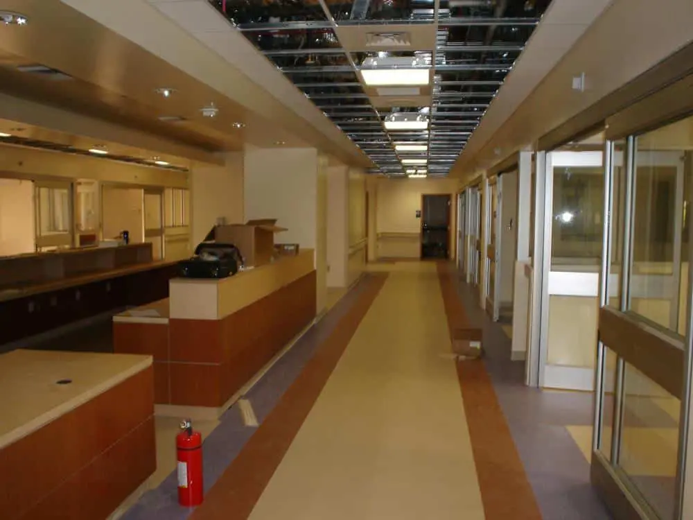 Work was accomplished as quickly as possible to mitigate the project’s impact on the fully operational, occupied facility, including laboratories and Labor and Delivery Rooms located directly below the ICU. Existing ICU patients were temporarily relocated to the 7th floor. Temporary dust partitions were constructed for each phase and existing walls and doors were protected and/or extended as necessary to prevent dust from infiltrating adjacent areas. All piping work was carefully coordinated to ensure that utility services to occupied areas were maintained at all times.