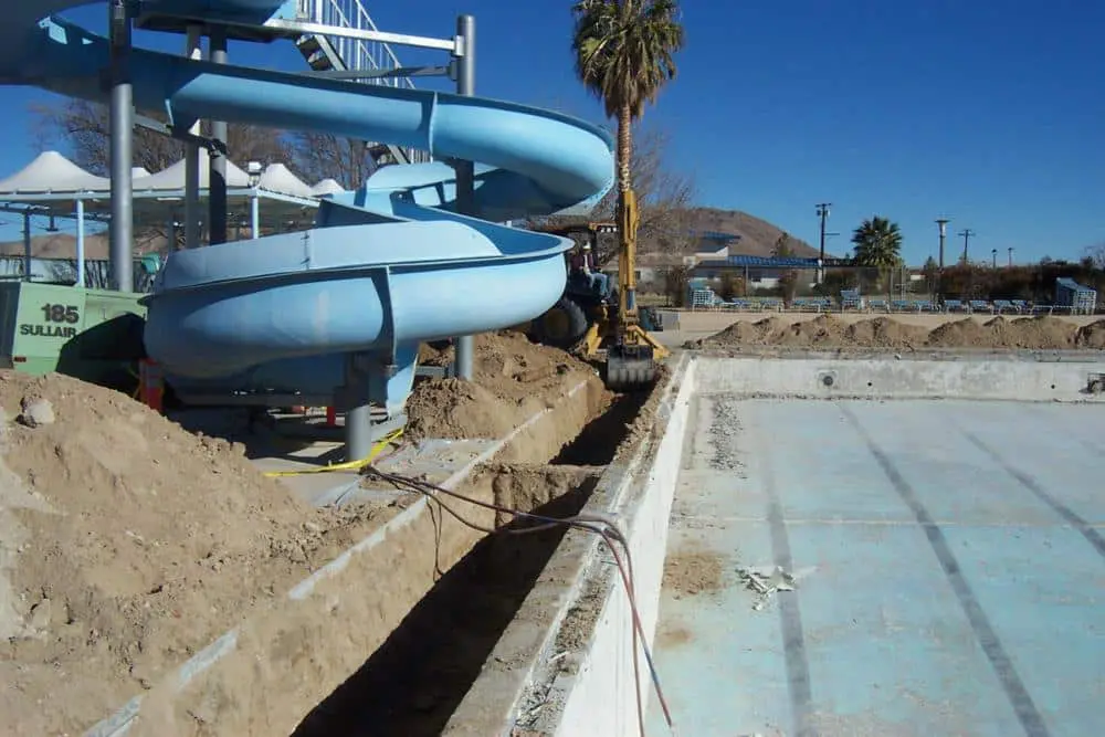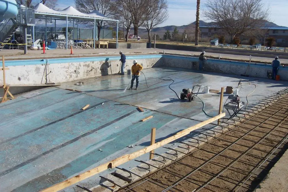 This project called for the design-build rehabilitation of the Oasis Club Pool mechanical system located at the Naval Air Weapons Station in China Lake, California. The scope of work included: engineering, demolition, hazardous materials abatement, excavation, concrete, swimming pool construction, mechanical repairs, and electrical work. Work was performed on the existing outdoor 82½ foot x 45 foot swimming pool and the 10 foot x 10 foot wading pool. The Project Team repaired and replaced gutter drains, bottom drains, inlet fittings, underwater lighting, expansion joints, and ceramic tile. The complete mechanical, electrical and chemical systems, including piping, conduits and controls, were designed and constructed to operate properly with minimal maintenance. The Project Team also performed abatement on the existing 23 foot x 25 foot equipment room which had asbestos in the stucco and lead-based paint. Testing and proper disposal of the hazardous materials were effectively coordinated to mitigate any safety incidents. A new wood-frame room was constructed to house all mechanical equipment including filters, pumps, piping, controls, chemical treatment, chemical storage, and a water heater. A waterproof wainscot was also installed to prevent water seepage to adjacent rooms during hosing down of debris.