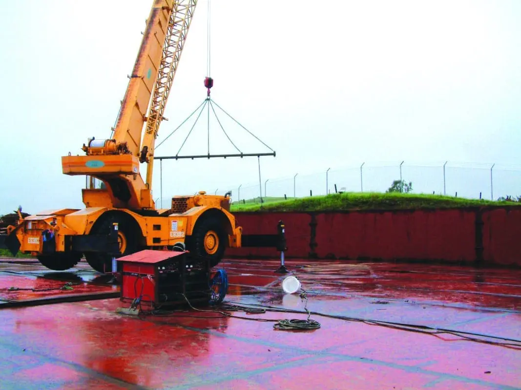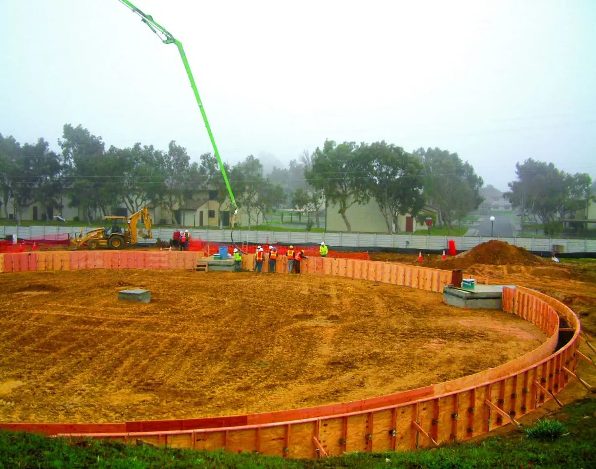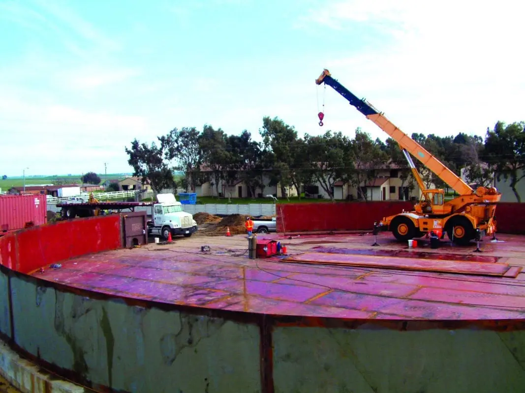 This project called for the removal and replacement of Reservoir 1518 at Travis Air Force Base in Fairfield, California. The scope of work included the removal of an above-ground circular reinforced concrete reservoir, erection of a new two million gallon circular welded steel reservoir with a concrete ring foundation, replacement of a waterline with an 18-inch diameter line, grading, and related incidental work. An option was awarded on this project which included: removal of the existing fencing and installation of new fencing and gates, construction of a 12-inch storm drain and associated catch basins, installation of a fire hydrant assembly, paving of all asphalt including base course, installation of area lighting including electrical lines and connections, installation of a fluoride injection system, installation of steel tank cathodic protection system, and installation of a reservoir mixing system.