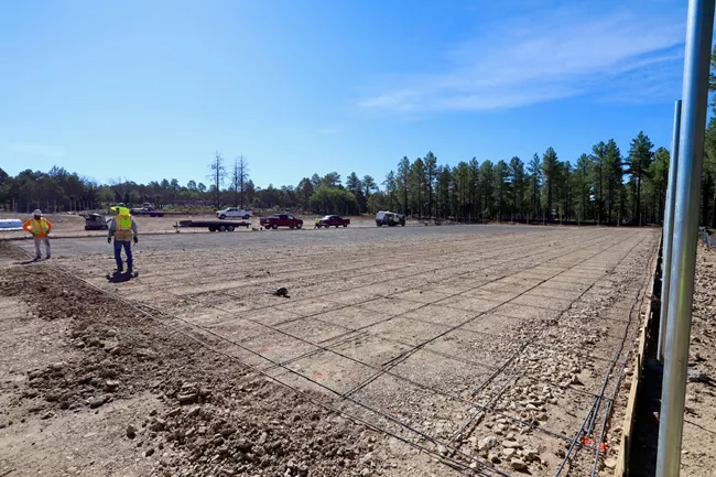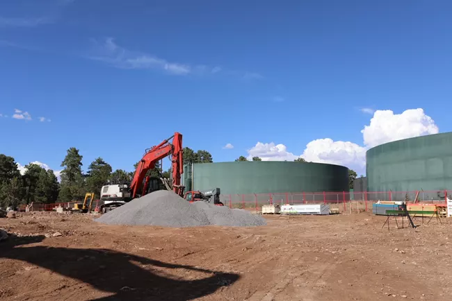 SEI is building two 1-million-gallon water tanks to store raw water adjacent to two existing water tanks on the South Rim. The construction crews began by clearing and grading the site before moving on to excavating and creating the forms to pour concrete footings for the foundation of the tanks.