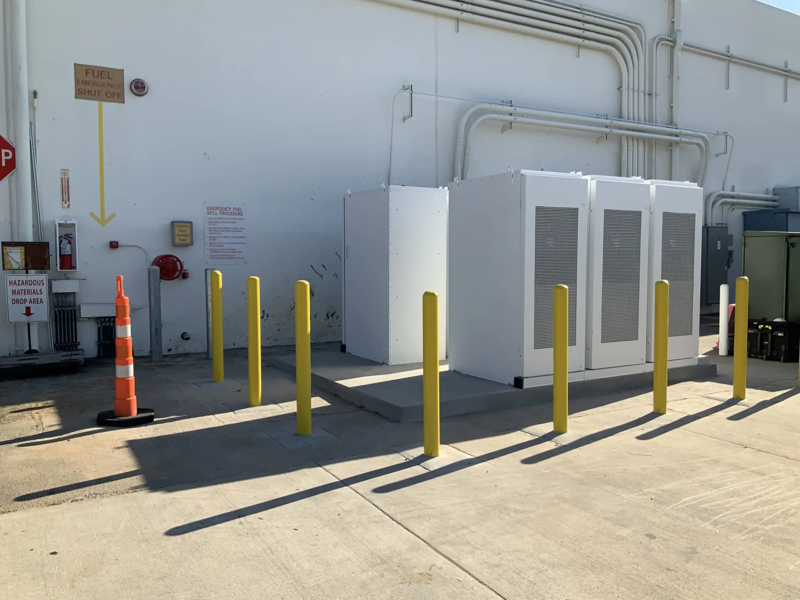 The project was composed of installing 5 Tesla batteries (555kw/ 1110kWh), a Tesla inverter, an ESS panel, a service utility disconnect, an underground conduit run, and an overhead conduit run painted to match the UPS facility.